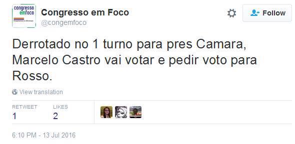 – O candidato petista, Castro, perdeu. O que ele fez? Passou a apoiar o candidato do Cunha. Pois é. Parece que o “ser PMDB” estava no sangue, no DNA.